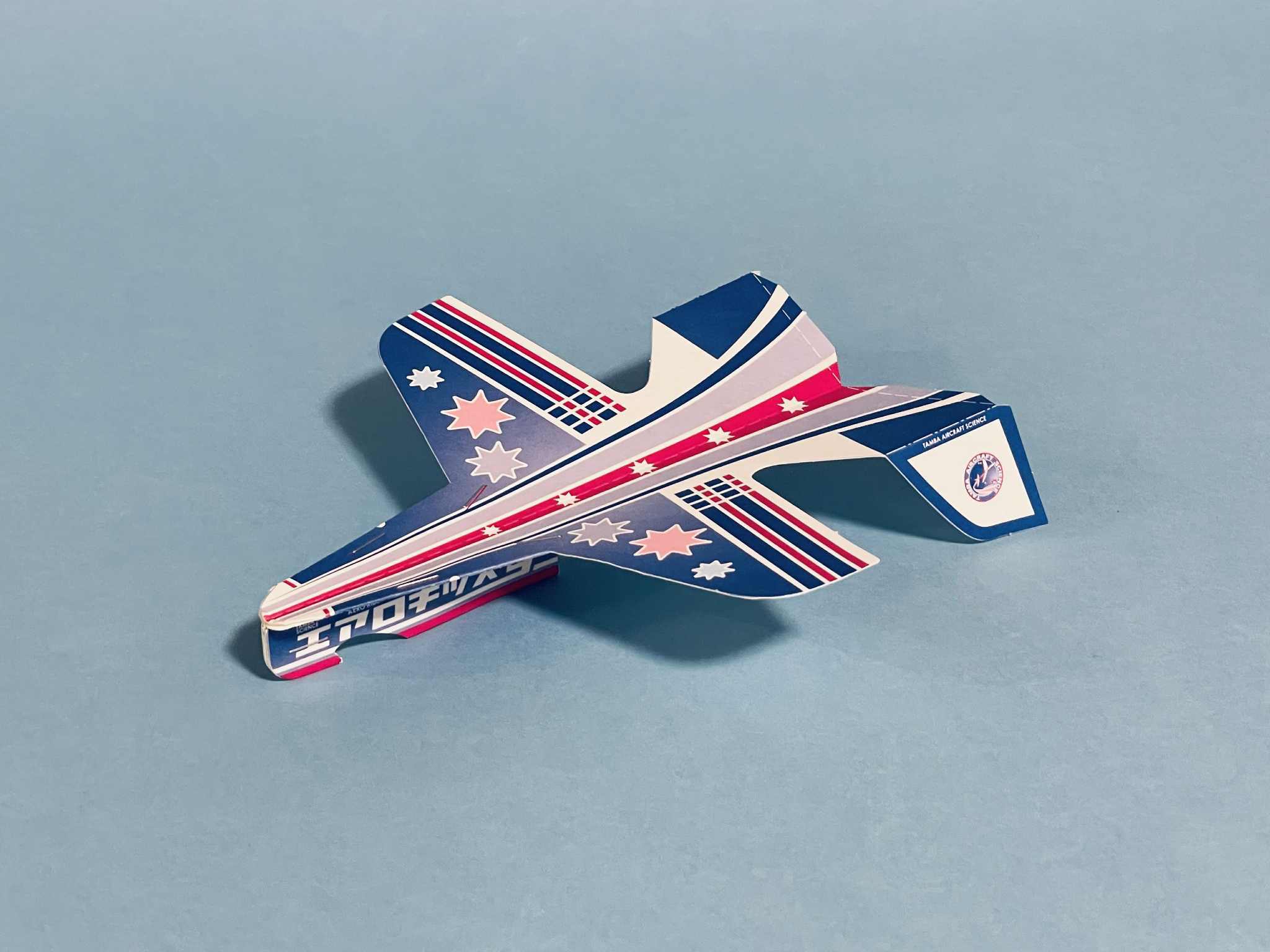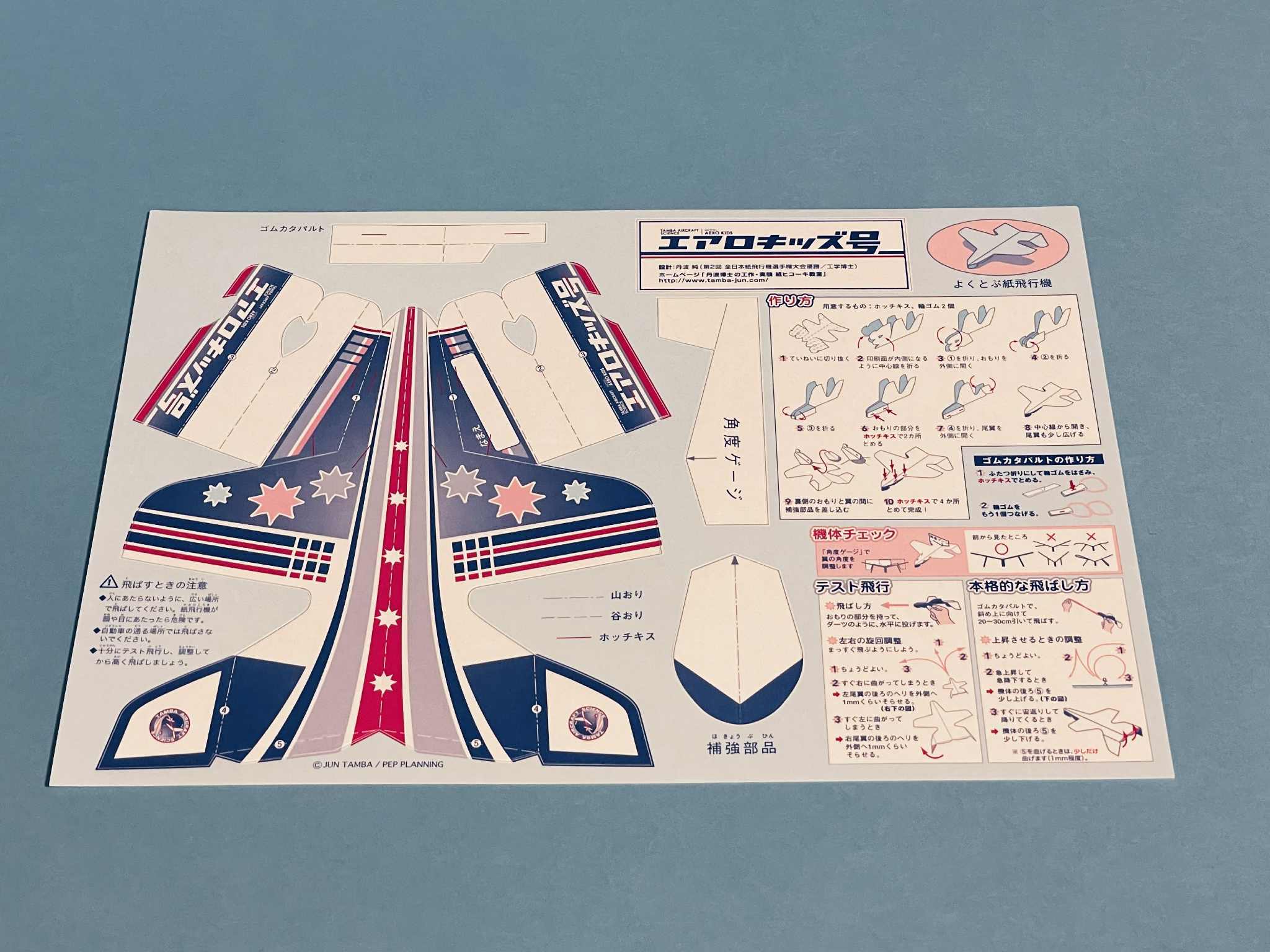 丹波博士の紙ヒコーキ教室で使用する標準機体。ホチキスを使用して組み立てます。